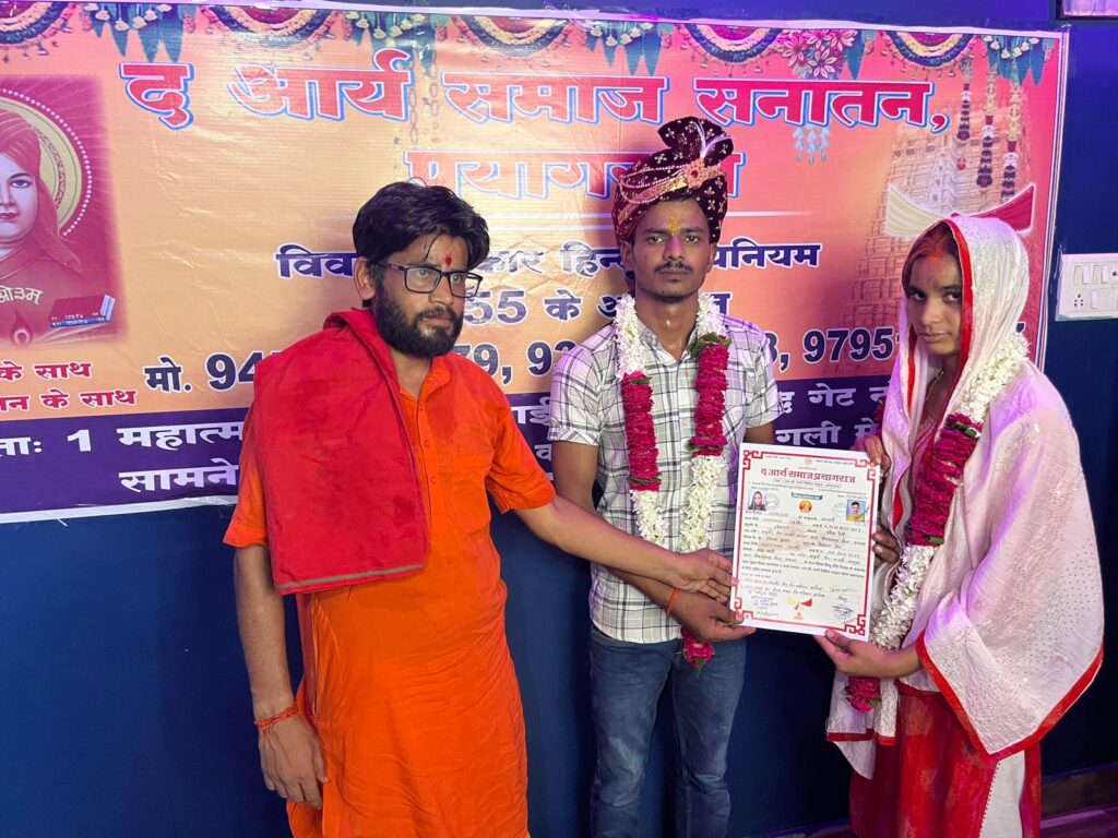 द आर्य समाज प्रयागराज ,द आर्य समाज सनातन स.स.द्वारा संयुक्त रूप से दहेज मुक्त शादी का अभियान चलाया जा रहा है जिसके अंतर्गत समाज को दहेज मुक्त बनाने के लिए संपूर्ण रीति रिवाज से विवाह संपन्न कराया जा रहा है